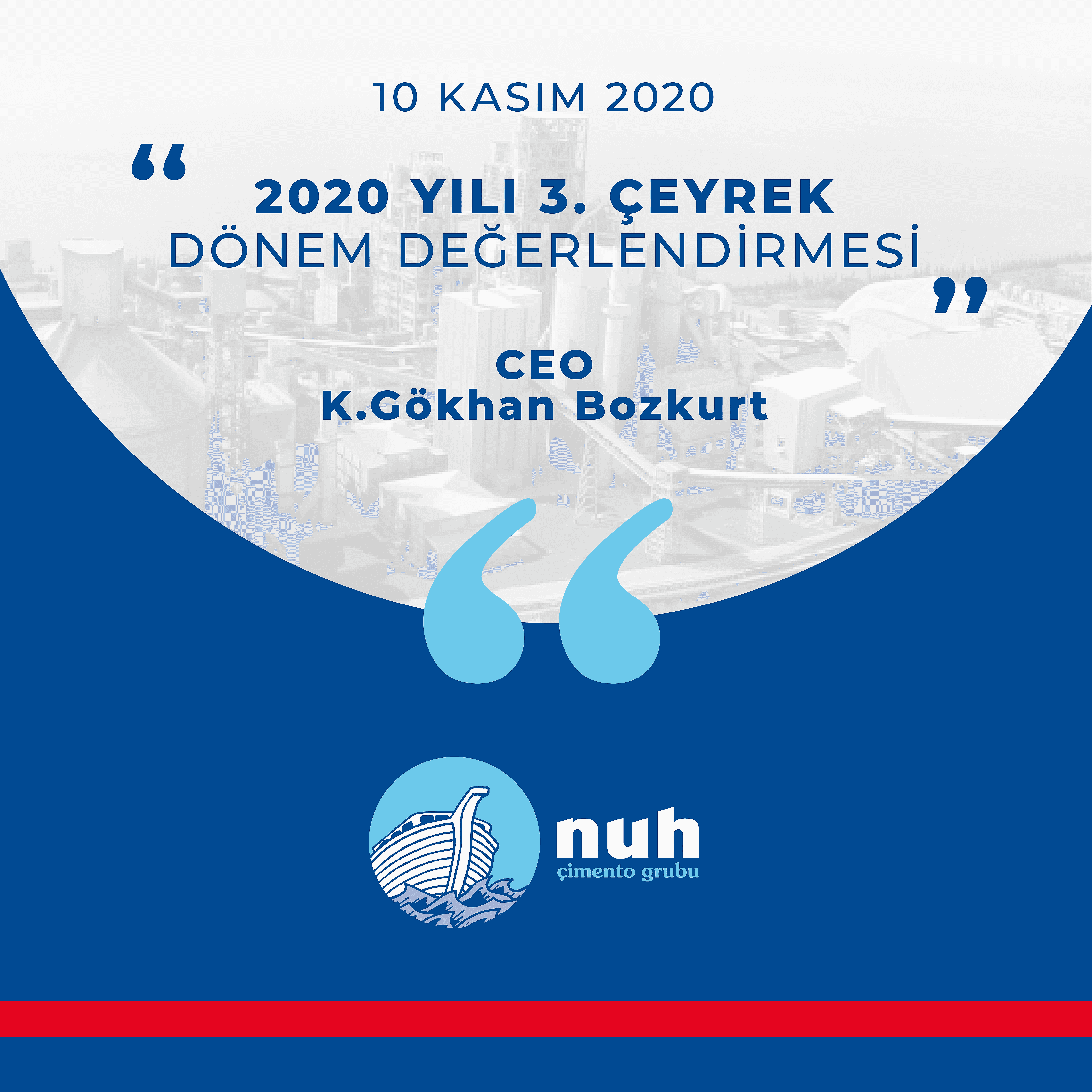 Türkiye Çimento Sektörünün Lideri olarak 2020 yılına damgasını vuran şirketimiz Nuh Çimento, geçen yıla göre cirosunu 981 Milyon TL’ den 1 Milyar 206 Milyon TL’ ye artırmış ve yüzdesel olarak da %23 oranında ciro artışını sağlamıştır. Brüt karımız da ise bu artış 224 Milyon TL’den 403 Milyon TL’ye çıkarak %80’lik rekor seviyede bir artış olmuştur. Yılın 3. çeyreğinde EBITDA’mız ise %76 artışla 200 Milyon TL’den 352 Milyon TL’ye yükselmiştir. EBITDA marjımızın Türkiye ortalamasının en az iki katına ulaşmasını bekliyoruz.